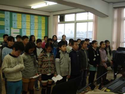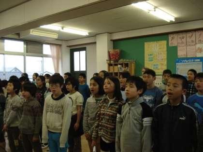 5年生以外誰もいない北校舎の3階に5年生の声が響き,心地よい緊張感の中での練習でした。