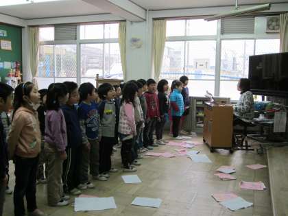 昨日の「6年生を送る会」を終え,今日からは入学式の練習が始まりました。