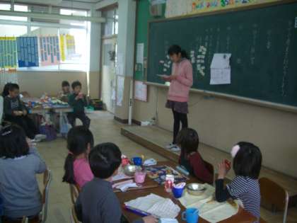 環境委員会のお姉さんが,クイズラリーの説明に来てくれました。