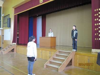 卒業式の練習〜今日から5年生も練習に参加してくれました。お互いのいいところを自分たちのものにして、よりよい卒業式にしようと気持を引き締めました。また、これも今日から、証書渡しの練習では本番同様、校長先生から証書を受取りました。
