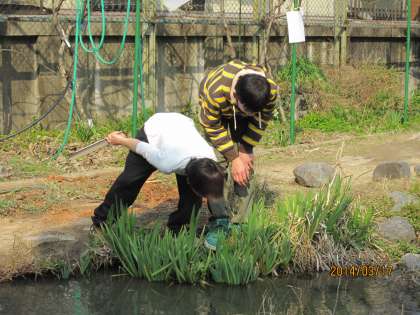 ボールを使ったり、縄跳びを使ったり・・・1年生のときを思い出して、竹馬やこま、けん玉にも挑戦しました。ビオトープでは池を観察しているうちに、夢中でえびやメダカを捕まえている6年生の姿もありました。