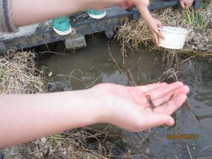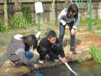 6年生になるとなかなかビオトープで遊ぶことはなく、久しぶり!という子どももいました。久しぶりに行くと、低学年のときに遊んだ楽しい記憶がよみがえってきました。タイムスリップしたように、池の中に生き物を夢中で探す6年生でした。