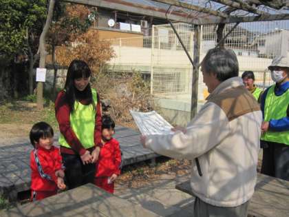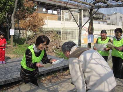 今日は今年度最後の「ビオトープ・園芸作業日」でした。1年間、暑い日も寒い日もビオトープの手入れをしていただきました。今日は、その感謝の気持ちを、校長先生から感謝状にしてお渡ししました。