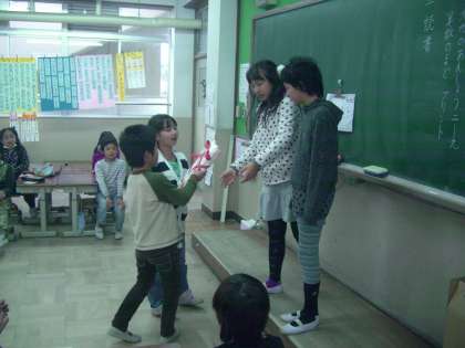6年生からステキなプレゼントをもらいました。手作りのぞうきんです。心のこもったお手紙も一緒にもらいました。6年生と過ごすのもあと1日。いよいよお別れの時が近づいてきました。