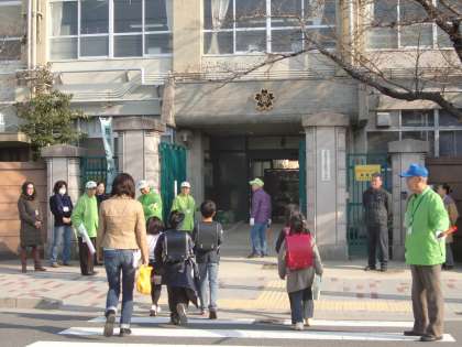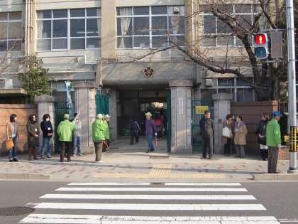 いつも立ってくださるPTA役員の方々に交じってついこの前卒業したばかりの6年生も立ってくれました。気のせいでしょうか,妙にたくましく見えます。