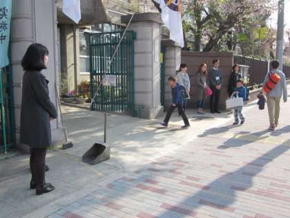 4月8日の子どもたちの最初の登校に合わせてPTAの『声かけ登校』も設定してくださいました。新しくPTAの本部役員さんも新メンバーでの『声かけ登校』です。
