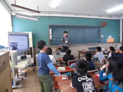 子どもたちは、興味深々で耳を澄まして英語での話を聞いてしました。