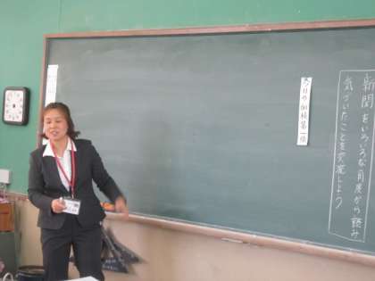 5年生は、新聞紙を使って記事の面積やお気に入りの記事をさがしたりしながら、意見交流をしました。見ているはずの新聞に、気付くことがたくさんあったようです。