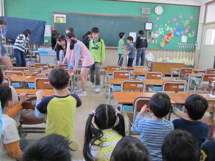 ほうきをつかったゴミの掃き方や,机の運び方など,