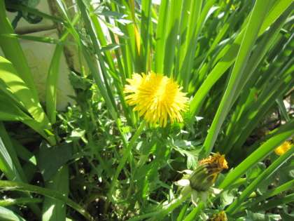 ビオトープには、きれいな草花もたくさん咲いています。特にきれいなタンポポを草のすき間に見つけました。その他にも色鮮やかな花がみつけられます。