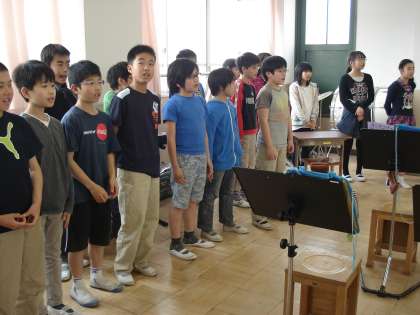 最後には,主旋律と副次的旋律に分かれて,二部合唱をしました。