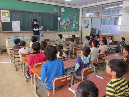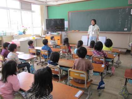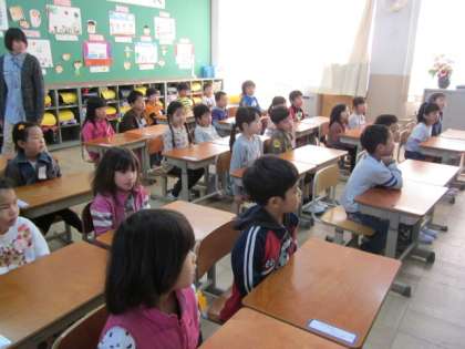 この写真は、朝の1時間目にとりましたが、どちらのクラスもしっかりと話を聞く姿勢ができています。