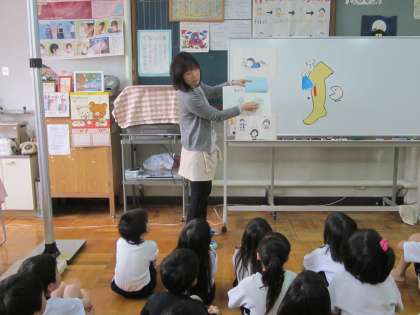 はじめに,養護の先生から,けがをしたときにどうすればよいのかを教えていただきました。