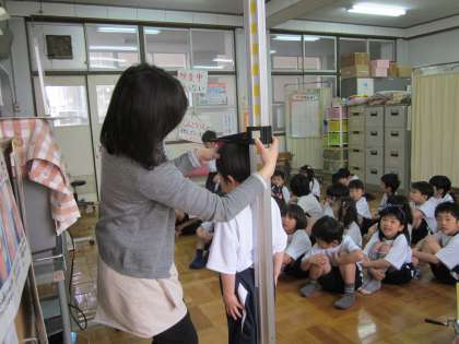 まっている間は静かに待ち,測ってもらったら「ありがとう」と伝えました。