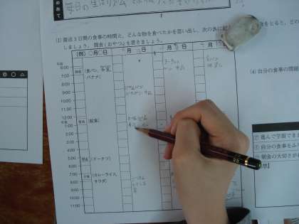 まずは1日の食事の時間や何を食べたかを振り返り,改善点を考えました。