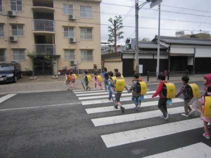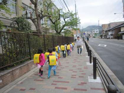 1年生の集団下校が終わり、今日から自分たちでまとまって帰ります。少し列が乱れそうになることもありましたが、子どもたちだけで帰っていきました。自分たちだけの力で帰れることも、すごくうれしそうでした。