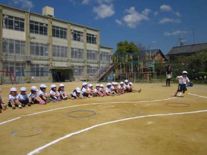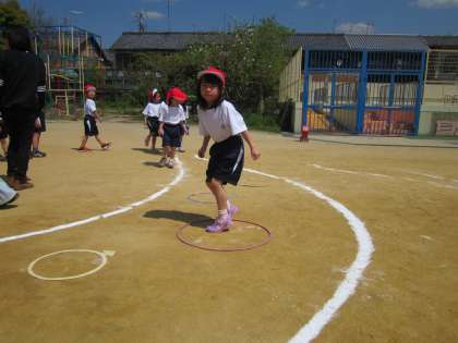 体育の学習は,とびくらべの学習をしています。