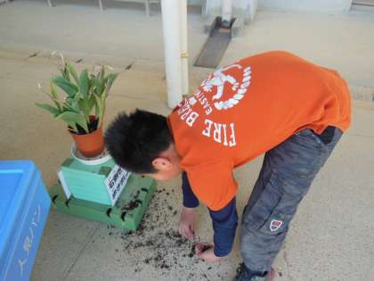 給食を食べ終わり,子どもたちと一緒に給食室へ食缶などを返しに行く時に,6年生がろう下の植木鉢からこぼれていた土を戻していました。6年生に聞いてみると,「こぼれていたからもどしているんです。」と話していました。それは,自分でやったわけではないのに自ら進んで片づけていたのです。6年生が進んでしていることにかっこよさを感じていると,一緒にいた3年生も「すごいな〜」というような顔で6年生のかっこいい所を真剣な表情で見ていました。