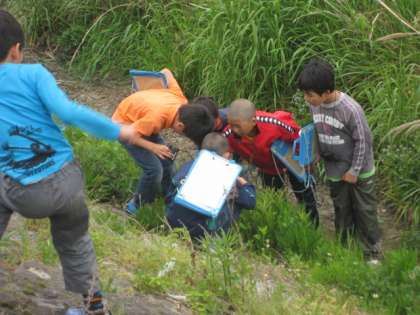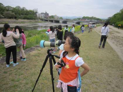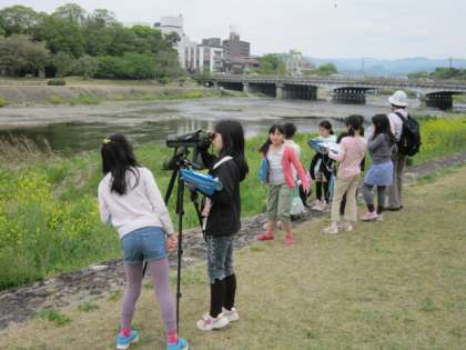 地域の先生に教えていただきながら、子どもたちも鳥や虫などの生き物を探します。みんなで探したり、双眼鏡や望遠鏡を覗き込んで探したりしました。新しい発見があると、思わず声が出るものです。春のゆっくりとした時間の中で、初めて知ったことや見付けたことがたくさんありました。