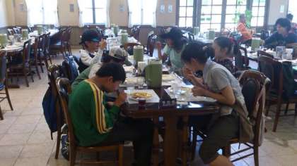修学旅行、最後の食事はカレーとゼリーでした。おいしそうにぺろっと食べていました。