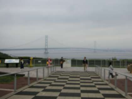 淡路サービスエリアで休憩したとき,明石海峡大橋をバックに記念写真を取りました。