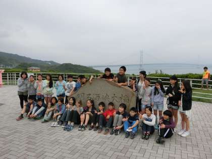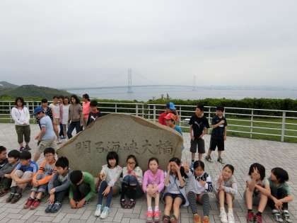 明石海峡大橋をバックに…