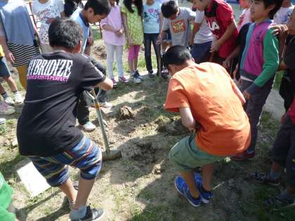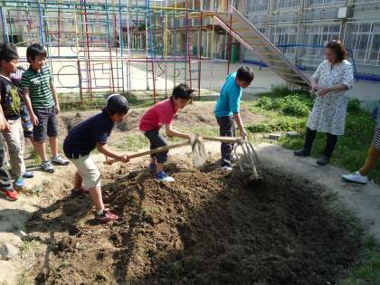 みんなが張り切ってたがやしてくれた結果,ふわふわの土になりました!少ない時間でたがやすことができ,さすが5年生です!!