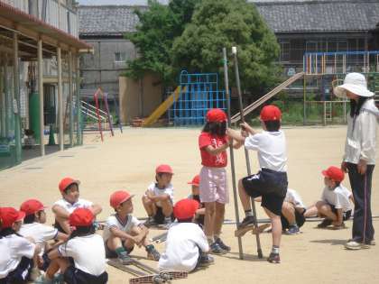 友だちと協力して,支えたりアドバイスしたりして活動しています。