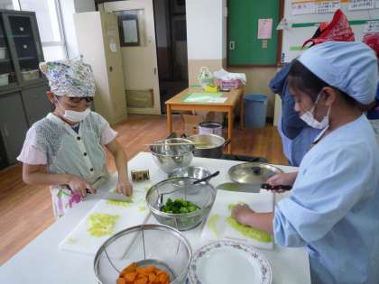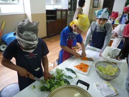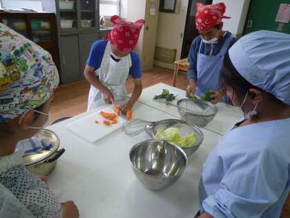 包丁、まな板の正しい使い方と、野菜のゆで方の学習です。