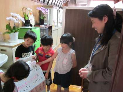 朝会でクラスでがんばることを教えてと言ったので、それを伝えに来てくれたのです。