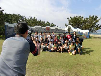 バスに乗る前に,宿舎の目の前に広がる浜を散歩したり,写真を撮ったりしました。
