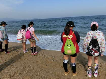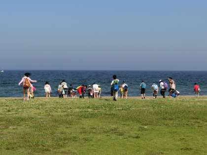 ちょっとだけ…と思っていた散歩も,気付けば海まで近付き,中には「靴濡れた〜」という子も…。