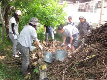 保護者の方は、土をひっくりかえして、運ぶ作業をしてくださいました。