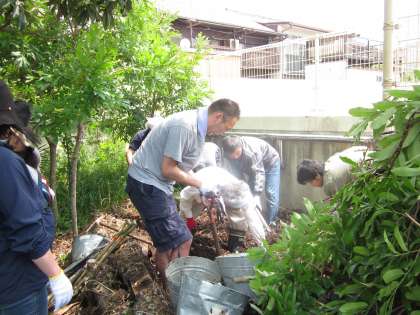 暑い中、汗いっぱいかいての作業。
