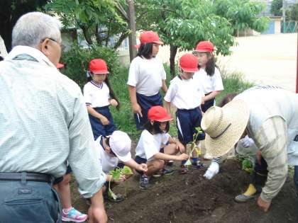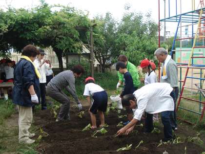 地域の方に教えていただきながら,サツマイモの苗を植えました。