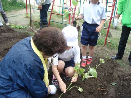 一人一本苗を植えられるように用意してくださり,一人ずつていねいに植え方も教えてくださいました。ありがとうございます。