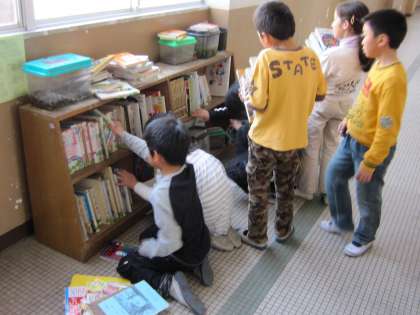 いろいろなところへ,クリーンの意識がいきます。教室の前の廊下の図書の整理をがんばっていました。