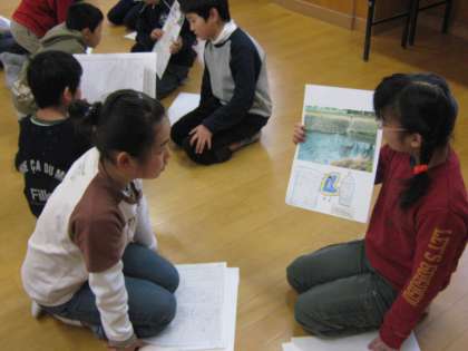 2月5日(金)に1,2組合同で今までに総合で学習をしていた「みんなの水辺」の交流会をしました。