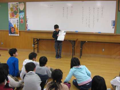 最後には,代表の子どもがみんなの前で自分の調べてきたことを話しかけるように発表する姿が見られました。