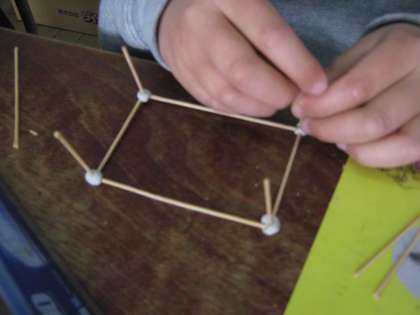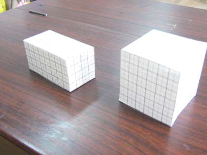 方眼紙を使って実際に箱を作ったり,竹ひごと粘土を使ってはこの形をかたどったりする活動を通して,はこの面・頂点・辺に目を向けて特徴をとらえることができました。
