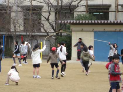 大縄跳びをみんなでする学年,ドッヂボールで楽しむ学年,バスケットボールで,1年生の子どもたちと楽しむ高学年,総合遊具で汗をかく学年,それぞれに,夢中になって,友だちと汗を流して遊ぶ姿は素晴らしいと感動します。