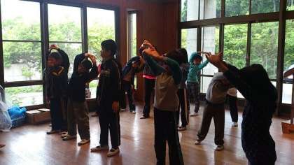 朝のつどいも、きちんと座って始めました。そのあと、体操をしました。