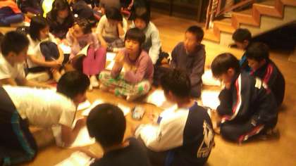 今日のふりかえりをしています。あいさつのこと、五分前行動のこと、身の回りのこと、どうだったでしょうか。