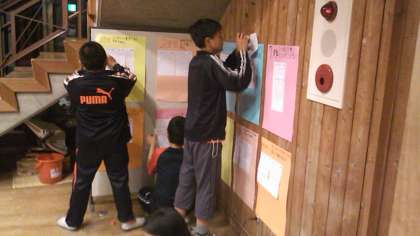 今日のふりかえりを紙に書いて貼っています。あいさつができたグループが多かったようです。明日は、山登りです。天候が気になりますが、今日は、早く寝て体調十分で明日を迎えたいです。それでは今日は、ここまでで。明日天気になあれ。