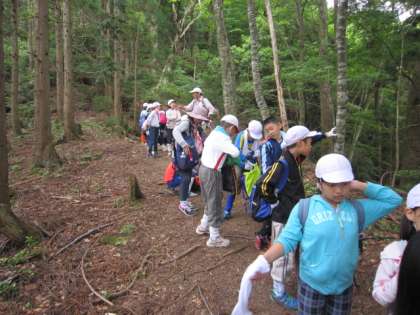 ちょっと一息。水分補給が大切です。でも飲みすぎにも注意。先頭のグループを交代しながら進みます。頂上までもう少し。