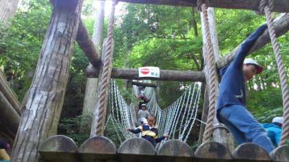 冒険の森の活動です。お天気はよいのですが、森の中は湿った状態。両手を使って、気をつけて行く約束をして出発しました。