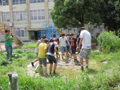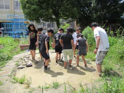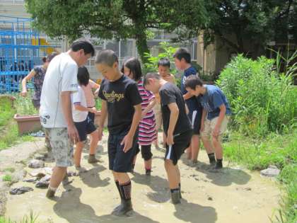 5時間目、5年生が田植えの準備をしました。