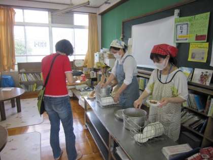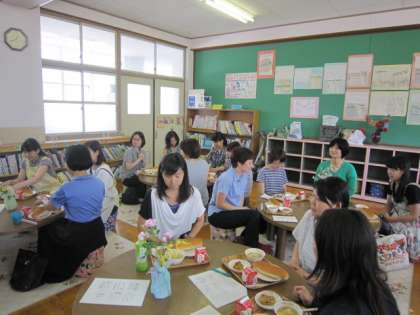 本日,給食試食会があり,多くの保護者の方が参加されました。栄養教諭の得丸先生には学校の給食について話をしていただきました。給食は栄養のバランスを考えて作られていることや,旬の食材を使った献立,行事献立等の工夫をこらした献立があることを教えていただきました。また,かむことの大切さについてもお話していただきました。給食の試食では,みなさん自身の子どもの頃の給食についてお話しされながら,和やな時間を過ごしていただきました。