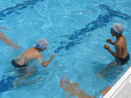 4年生は水泳学習で,クロールと平泳ぎをがんばっています。友達同士でいい所をほめあったり,アドバイスをしあったりして上達を目指しています。夏休みが終わるまでに,今よりも成長できていたらいいなと思います。