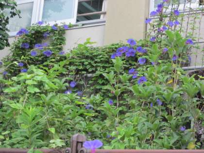 今年も東一条通りから見えるところにアサガオが咲き始めました。